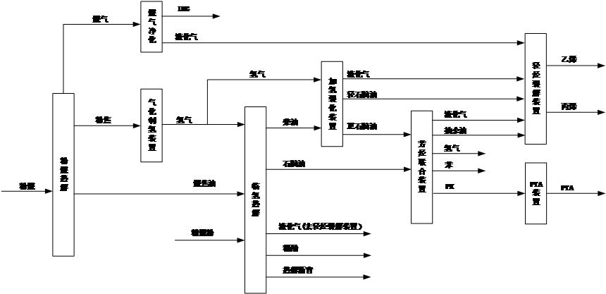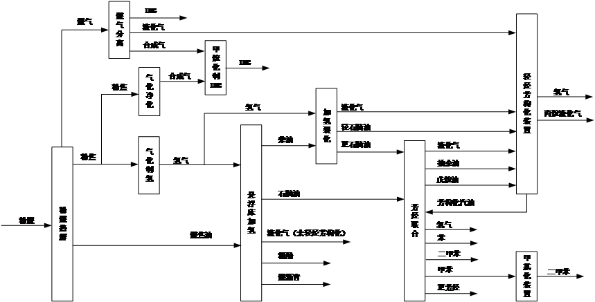 规划以煤炭资源为基础,将煤化工领域的粉煤热解、焦油加氢、煤气净化以及石化领域的加氢裂化、芳烃联合、轻烃芳构化等生产技术进行耦合,实现煤炭分质利用制芳烃,完成煤炭的分质、清洁、高效转化,减少了对石油原料的依赖性,实现了煤代原油大批量生产芳烃的可能性。