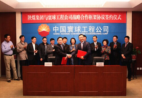 (图为陕煤集团与中国寰球工程公司战略合作框架协议签约仪式)